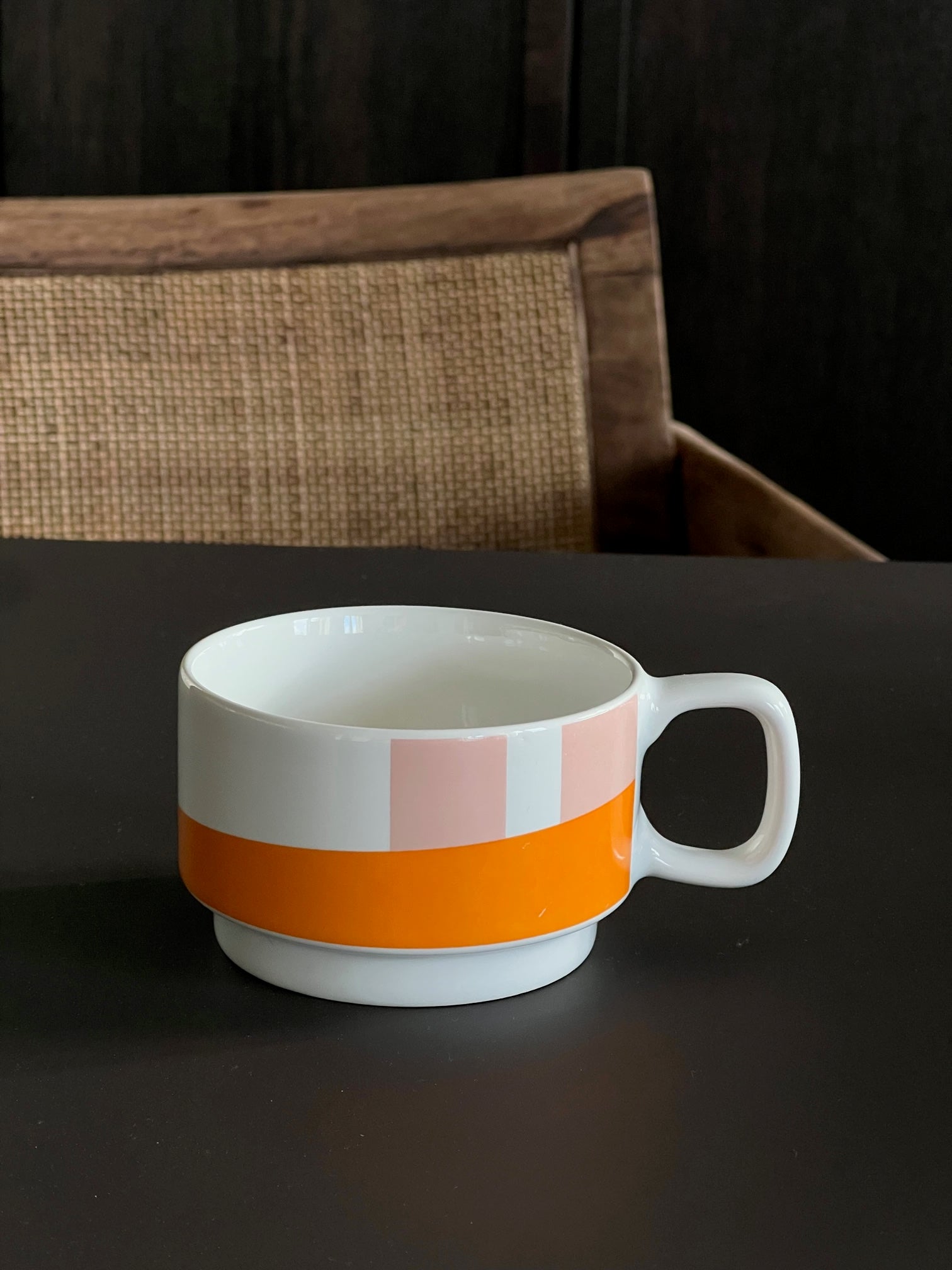Pink & orange graphic printed ceramic design cup with handle. Collection: because why not .