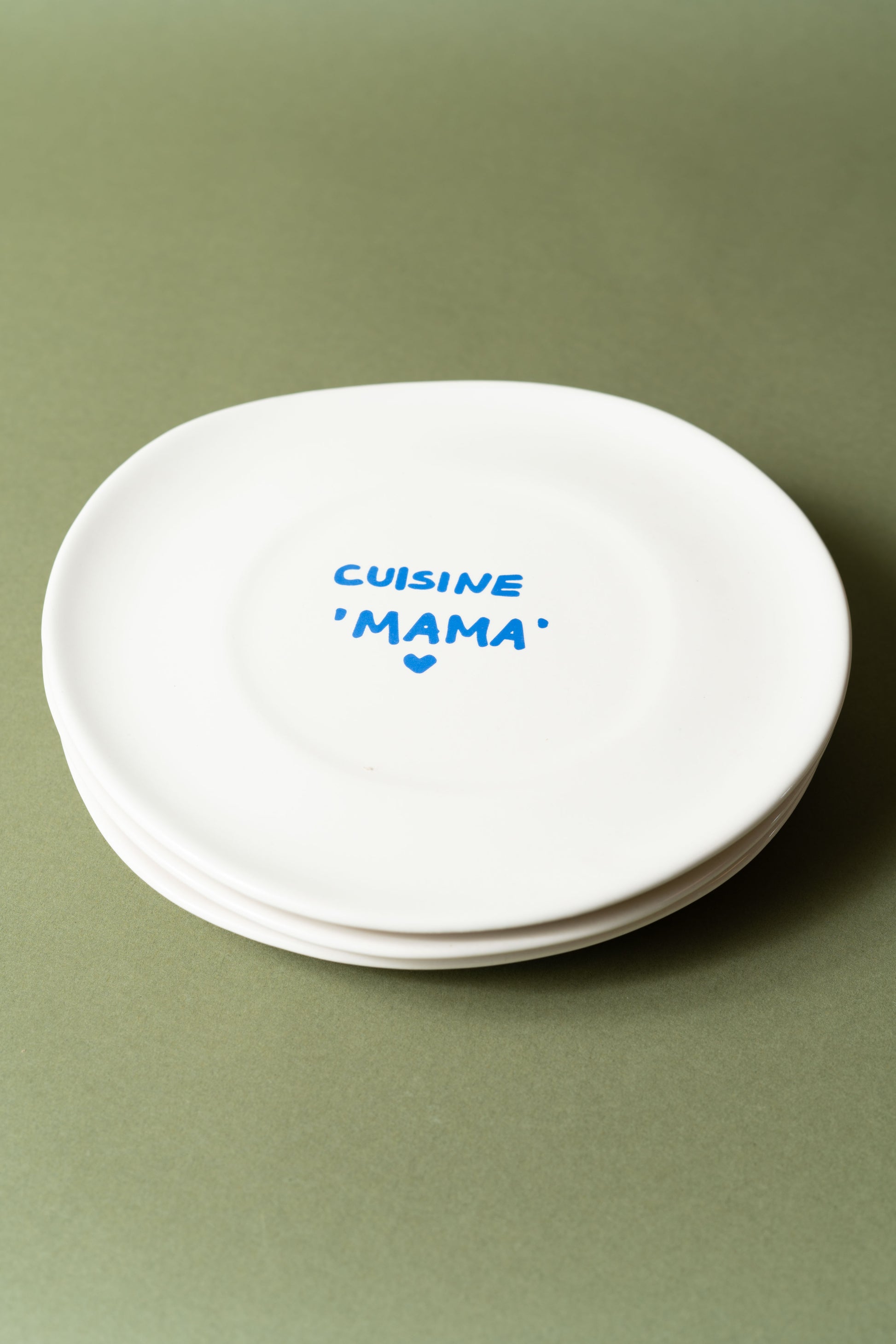 Because Mama's kitchen is the best kitchen, always there, always served with Love. Handmade irregular shape desert plate, with hand applied decals , 22 cm.