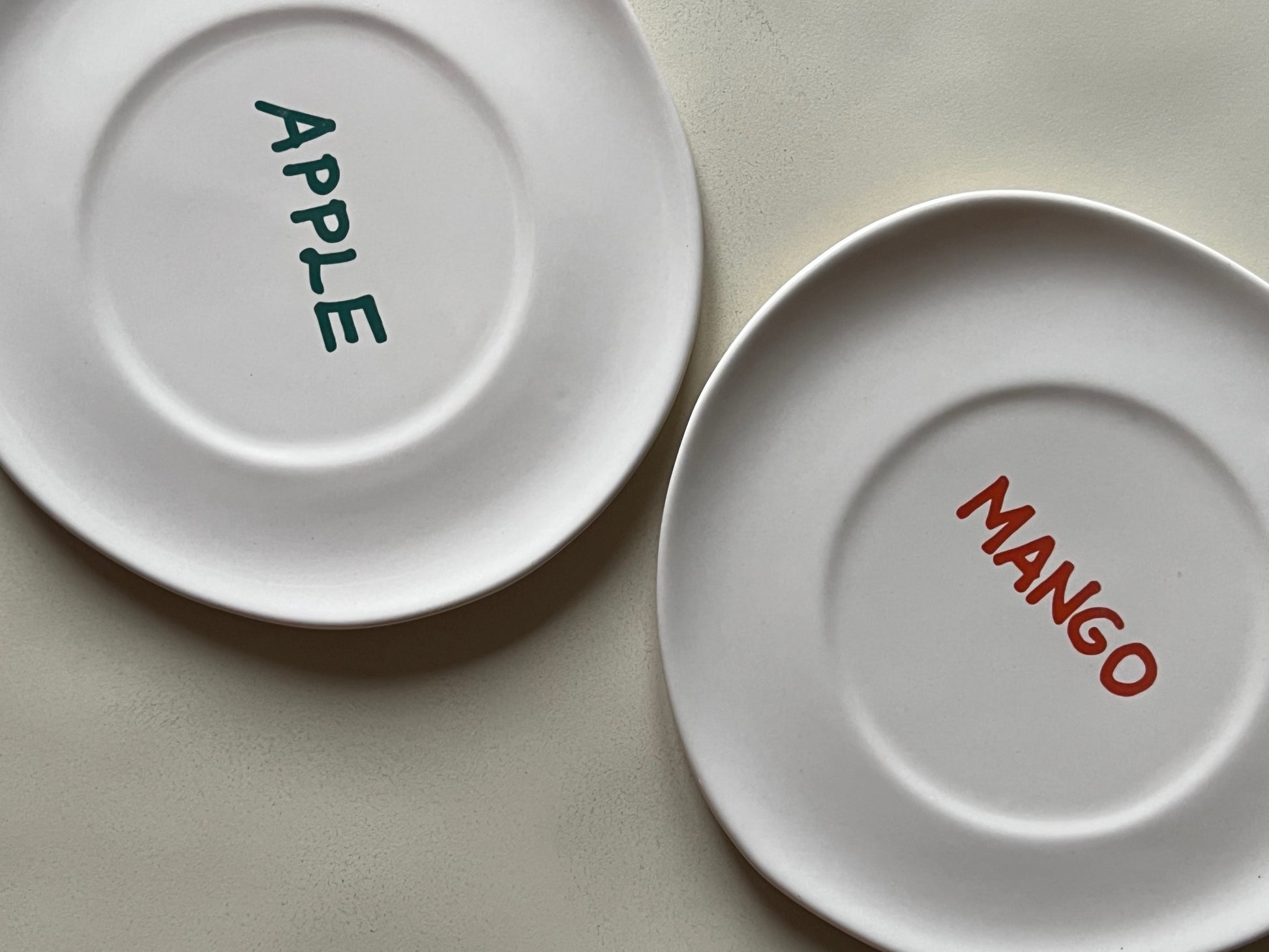 Handmade Ceramic Dessert Plate ,Mango. This elegant dessert plate features a playful MANGO decal in warm orange. Its slightly organic shape adds a unique, artisanal touch to any table setting. Perfect for serving desserts, snacks, or as a decorative piece. *: Dishwasher and microwave safe .A stylish and functional addition to any kitchen or dining collection.