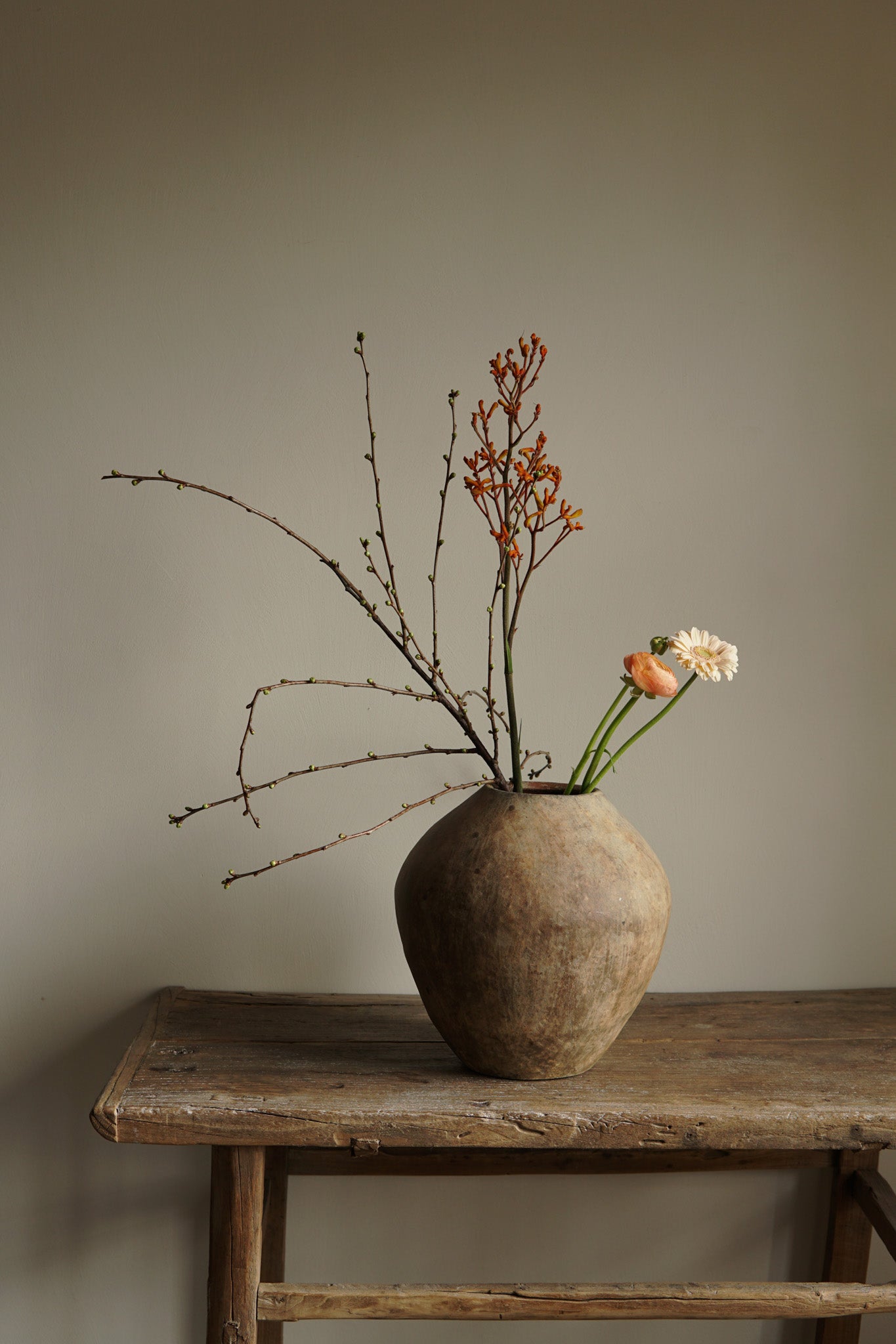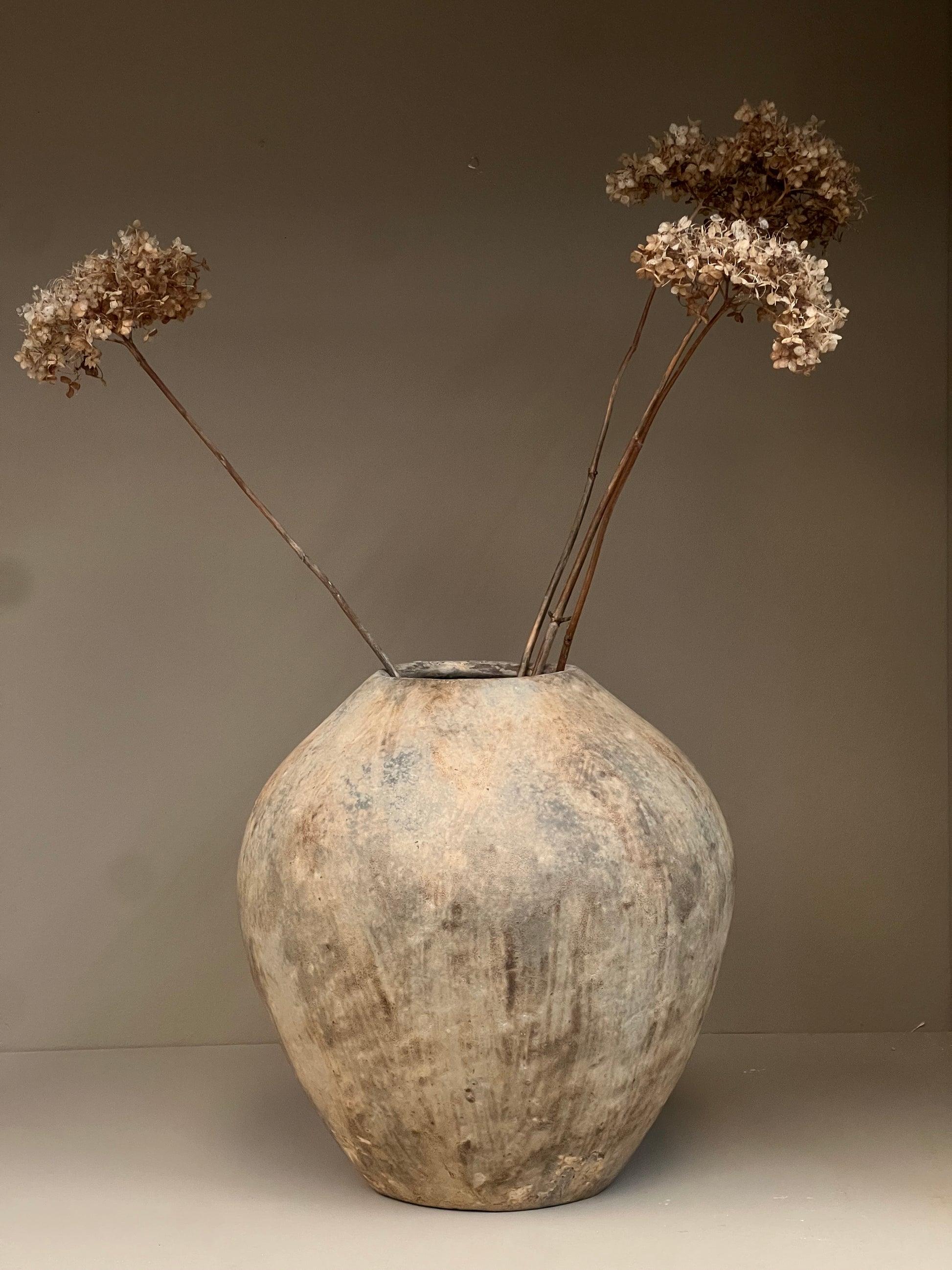 Earth shape vase, with aged finish in light brown color. These vases are a unique sculptural, handmade peaces. Modern-shaped vases can be paired with dried flowers, or as a beautiful sculptural piece in the decor space. Combine them with ceramic vases to play around with different textures and earthy looks. Not water resistant.
